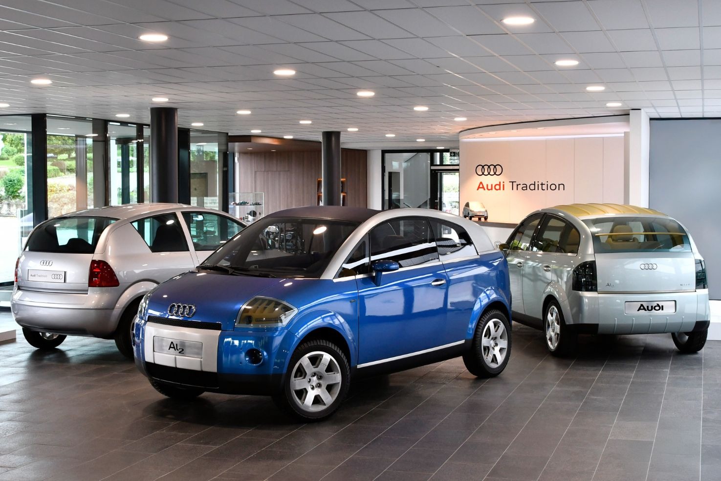 Im weiteren Entwicklungsverlauf entstanden zwei bemerkenswerte Studienfahrzeuge. Die erste präsentierte Audi 1997 als Showcar auf der IAA in Frankfurt. Unter der vorläufigen Modellbezeichnung Al2 und mit seiner charakteristischen Lackierung trug das Fahrzeug den Beinamen „Light Green“. Nur wenig später folgte auf der Tokyo Motor Show die „Light Blue“ Studie, eine dreitürige Variante des Al2 mit variabler Ladefläche und Rolldach, die den Namen „Audi Al2 open end“ trug.