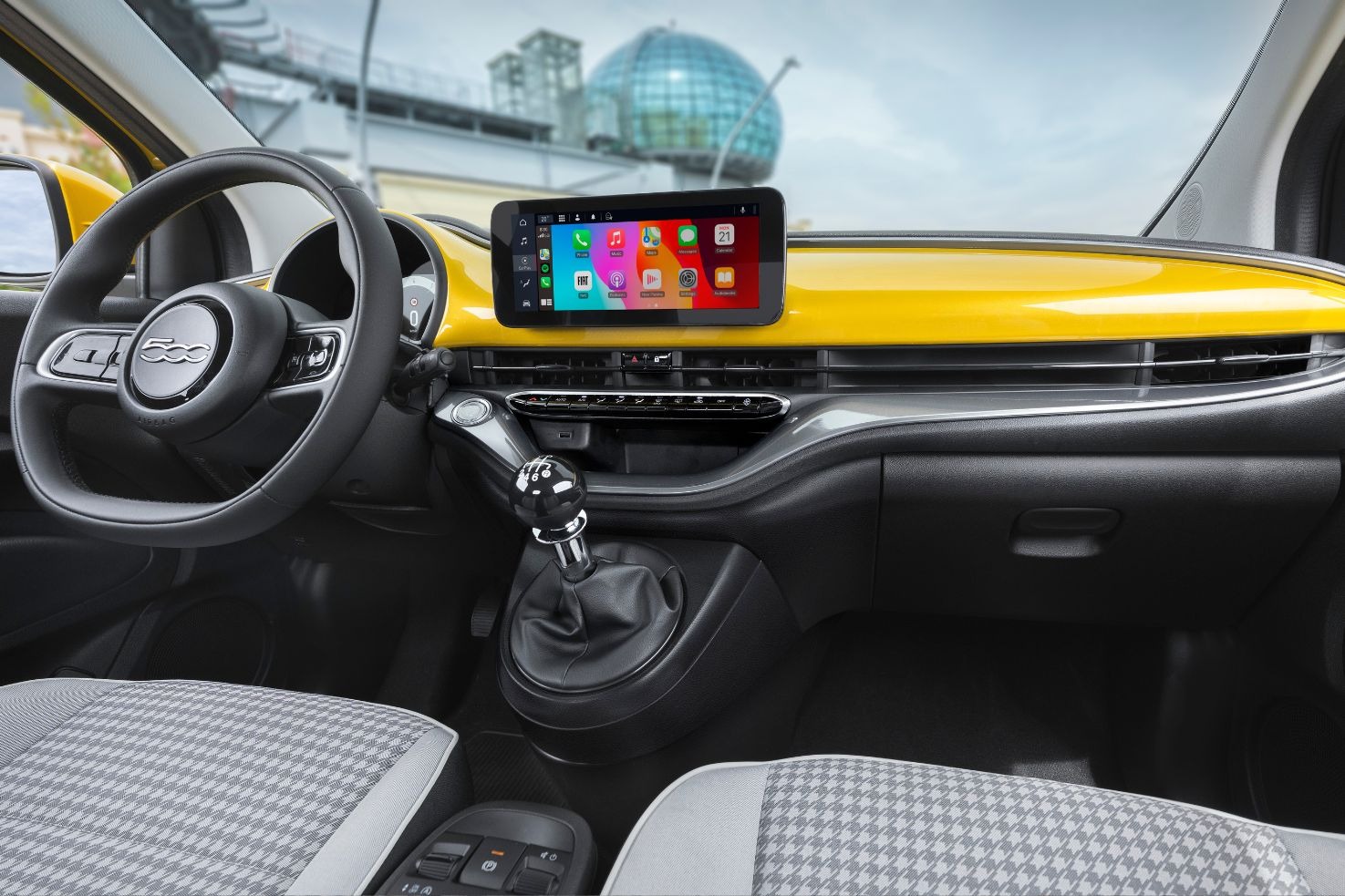 Im urbanen Alltag beweist der Fiat 500 Hybrid Torino seine Stärken durch moderne Vernetzung. Das Herzstück des Fahrzeugs ist ein hochauflösender 10,25-Zoll-Touchscreen, der sich frei konfigurieren lässt. Über die drahtlosen Standards Android Auto und Apple CarPlay können Smartphones nahtlos in das Infotainmentsystem integriert werden. Auch der Empfang digitaler Radiosender via DAB+ ist serienmäßig möglich.